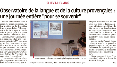 Conférence sur la Généalogie Militaire à l’Observatoire de la langue et de la culture provençales :