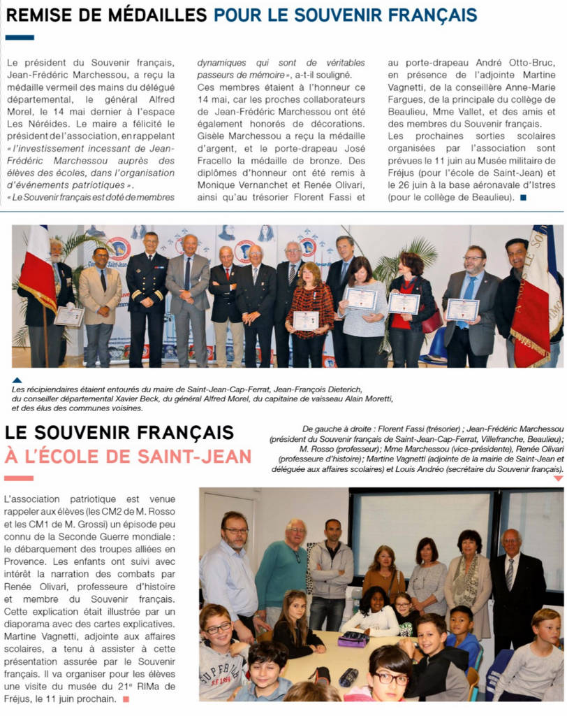 Le 14 mai, en présence de M. Xavier Beck – Conseiller départemental, de M. Jean-François Dietrich – Maire de Saint-Jean-Cap-Ferrat et du Général Alfred Morel – délégué départemental du Souvenir Français, les membres et amis du comité de Villefranche-sur-Mer / Saint-Jean-Cap-Ferrat se sont réunis pour la remise de la Médaille de vermeil du Souvenir Français à Jean-Frédéric Marchessou – Président du comité.
