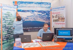 Le Cercle Généalogique Maralpin avait cette année son stand pour renseigner et proposer ses programmes au public. Bâche et roll-up ont été sortis, nous avons également diffusé notre clip promotionnel et les films de nos actions de mémoire avec les enfants de CM2 de Villefranche-sur-Mer et Saint-Jean-Cap-Ferrat. Nous avions souhaité participer de cette manière aux journées du patrimoine qui ont pour objet cette année « Jeunesse et patrimoine ».