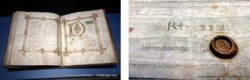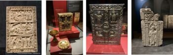 Les Maralpins ont aussi été subjugués par la beauté des pièces présentées : ces psautiers aux reliures d’or, rehaussées de pierreries, ces plaques d’ivoire finement sculptées, ces parchemins où les textes manuscrits adoptent bientôt une calligraphie codifiée, la carolingienne, ces objets de culte, calice, patène où rien n’était ni trop beau, ni trop cher.